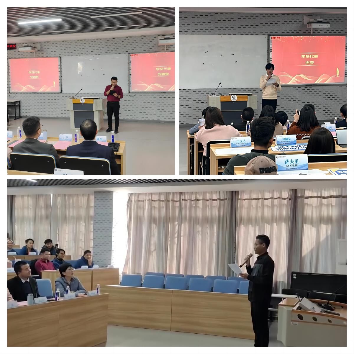 学员代表张加油感谢青山集团给予的学习机会及学院的大力培养。学员代表安德鲁分享道本次学习不仅提高了同学们的中文水平,同时也感受到了中国传统文化的独特魅力,亲身感受到中国壮丽河山的秀丽风景。学员代表杰亚说在yl6809永利官网学习就像在家一样温暖,老师和青山总部同事们都非常关心与支持大家。同时他提到,结业并不代表中文学习的结束,而是新的起点,未来将继续努力。