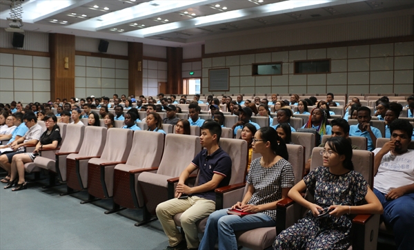 茶山派出所陈沛豪、周陈怡人两位警官分别为国际学生作交通、人身和财产安全方面专题辅导,市公安局出入境管理局欧阳超警官作国际学生签证、居留许可办理相关知识专题讲座。校图书馆吴凤仙老师带领国际学生参观了育英图书馆并作入馆教育。留管部教学科姚华、学生科陈康豪、周颖三位老师分别为国际学生重点解读了教务工作、学生管理规定、奖学金制度等内容。国际学生干部Michael、Natalie向新生们介绍了国际学生联合会组织结构和职能,希望他们积极参与国际学生联合会,搭建起学校与学生之间的沟通桥梁,更好地为学校和学生服务。