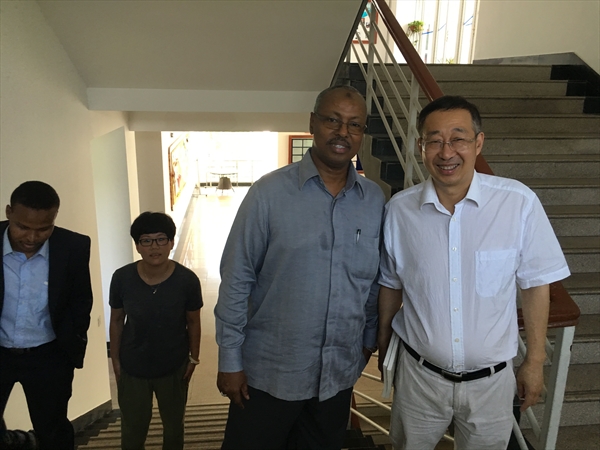 似火的骄阳挡不住yl6809永利官网国际化进程的脚步,2016年7月20日吉布提共和国驻华大使Abdallah Abdillahi Miguil及工作人员一行2人在学校外事处交流科科长熊勇的带领下,来到国际合作学院参观访问。院长严晓鹏和办公室副主任廖一帆热情接待了大使一行人。