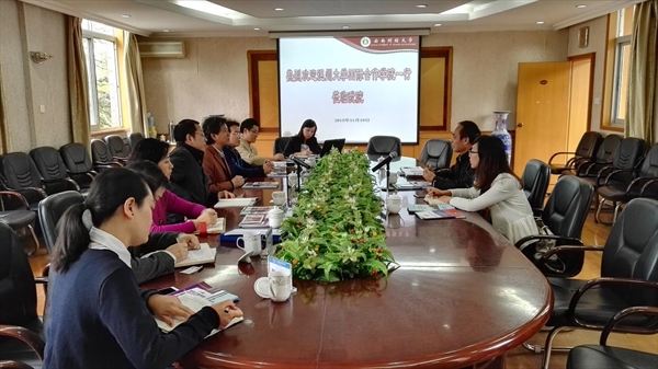 11月19日上午,云南财经大学国际工商学院院长刘尔思、副院长段云龙、党委副书记杨秀伟偕同相关科室负责人员与永利官网调研团队进行了座谈,国际工商学院党委副书记杨秀伟向我们详细介绍了该院中外合作办学项目的发展历史、特色品牌和教学管理经验等,随后双方在学分管理、师资建设、课程设计、教学监督和项目基地建设等方面作了有益的交流,双方期盼今后两校两院在中外合作办学方面进一步加强交流与合作,进一步提升两校的中外合作办学水平。