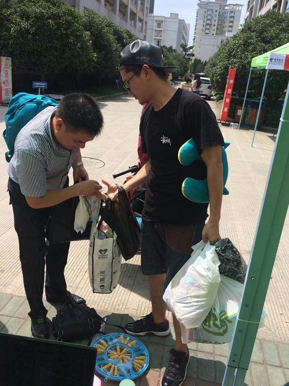 根据学校的统一部署,配合学区的工作安排,永利官网迎新工作有序开展。今年永利官网的新生全部安排在超豪学区E区,上午7点开始,迎新点就陆续挤满了来报到的新生同学,核对录取通知书、报到注册、分发资料、领取钥匙饭卡、疑难解答、行李搬运、送新生到宿舍,现场接待热情有礼,手续办理有条不紊,细致周到的服务工作,获得了新生和家长的一致赞许。