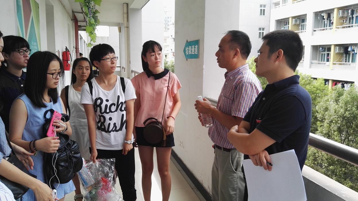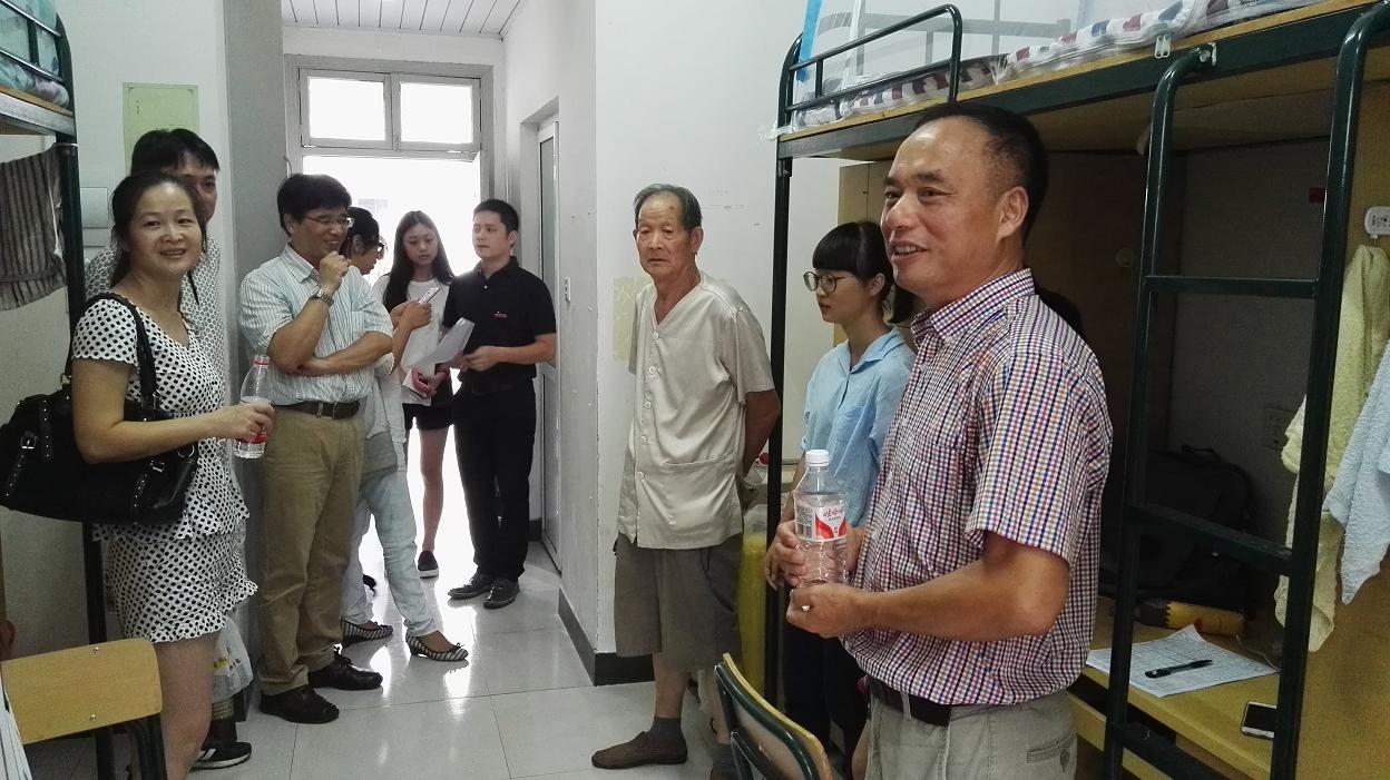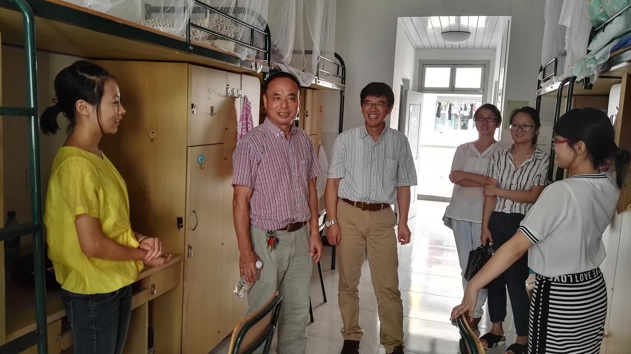 9月8日下午两点,yl6809永利官网国际合作学院党总支书记朱建平、副院长陈军带领新生班主任和辅导员一起走访永利官网2015级23个新生寝室,看望慰问新生及家长。