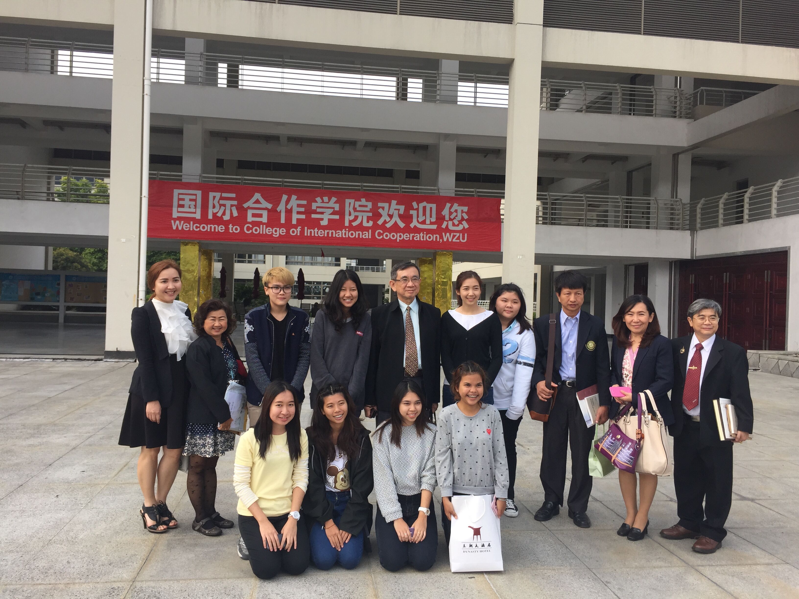 随后,东方大学校长Sompol Pongthai一行在教学楼看望了泰国留学生,亲切地询问他们在yl6809永利官网的学习和生活情况,鼓励他们多与中国同学交朋友,多参与校园活动和中国文化体验活动,希望他们珍惜在中国、在yl6809永利官网学习的宝贵机会,回国后能够学以致用,促进中泰友好交流。泰国留学生们纷纷表示对温大的校园环境和课程安排都十分满意,他们将努力地学习,争取有更多的收获。