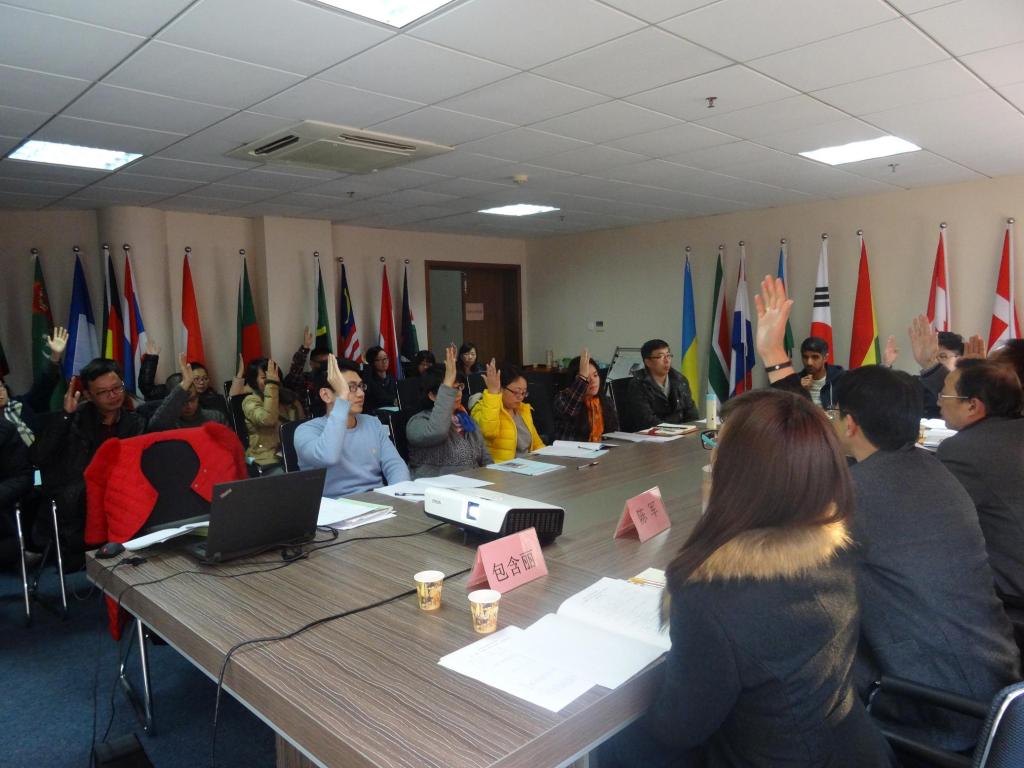 学院工会主席包含丽作工会工作报告,从维护教职工合法权益、丰富教职工业余生活、加强工会自身建设三个方面回顾了过去一年的工会工作,提出了今后工作思路,并作提案收集情况说明。随后,全体教职工分为两组审议讨论了《院长工作报告》、《工会工作报告》、《yl6809永利官网国际合作学院专业人才引进和师资队伍建设方案(讨论稿)》和各项提案,并在会上提出了改进学院工作的意见和建议。会议以举手表决的形式一致通过了《院长工作报告》、《工会工作报告》和《yl6809永利官网国际合作学院专业人才引进和师资队伍建设方案》。