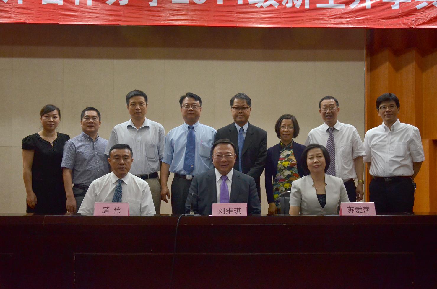 副校长薛伟致辞。他指出两岸合作办学的目标是引入台湾先进的教育理念、教学方法和优秀师资,为同学们创造良好的学习环境和发展机会,致力于培养视野开阔、具有创新创业精神的应用型专业人才。合作办学一年多以来,在双方老师们的精心培育下,第一届学生的优良学风、团结协作精神、实践动手能力都深受社会好评。他相信,经过双方的精诚合作,一定会将该项目打造成为两岸高等教育合作办学的典范。