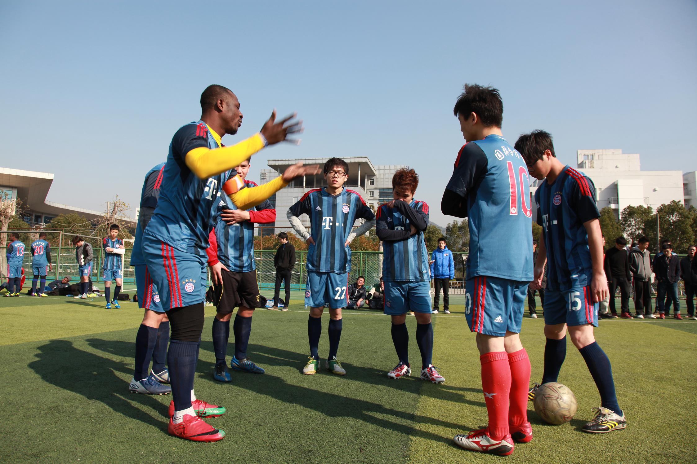 本次“金秋杯”于11月16日揭开战幕,历时一个多月,永利官网中外学生组成的足球队克服种种困难,勇敢迎战强敌,虽然最终在决赛中遗憾地输给了对手,但他们在赛场下刻苦训练,在赛场上奋力拼搏的精神还是值得尊敬。值得一提的是,不同肤色、不同国籍的学生参与比赛,为足球挥洒激情,既是球艺的切磋,也是友谊的交融,对促进我校中外学生的交流有很大的帮助。