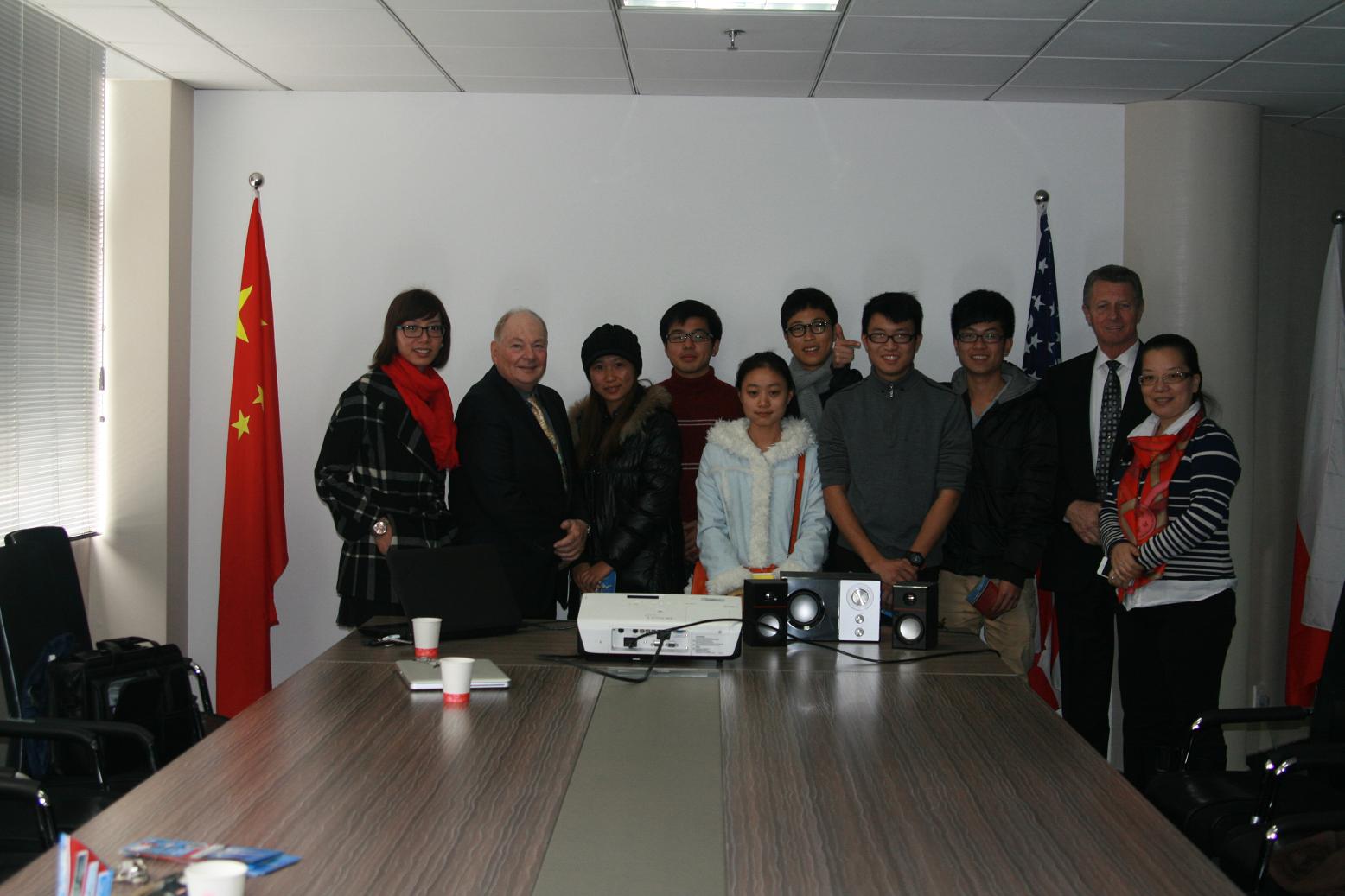 2014年1月10日,美国道林大学航空学院副院长Thomas Daly一行来访yl6809永利官网,参观了学校校史馆、发绣馆、国际合作学院和机电学院实验室,并向在校师生展现了飞行的魅力。