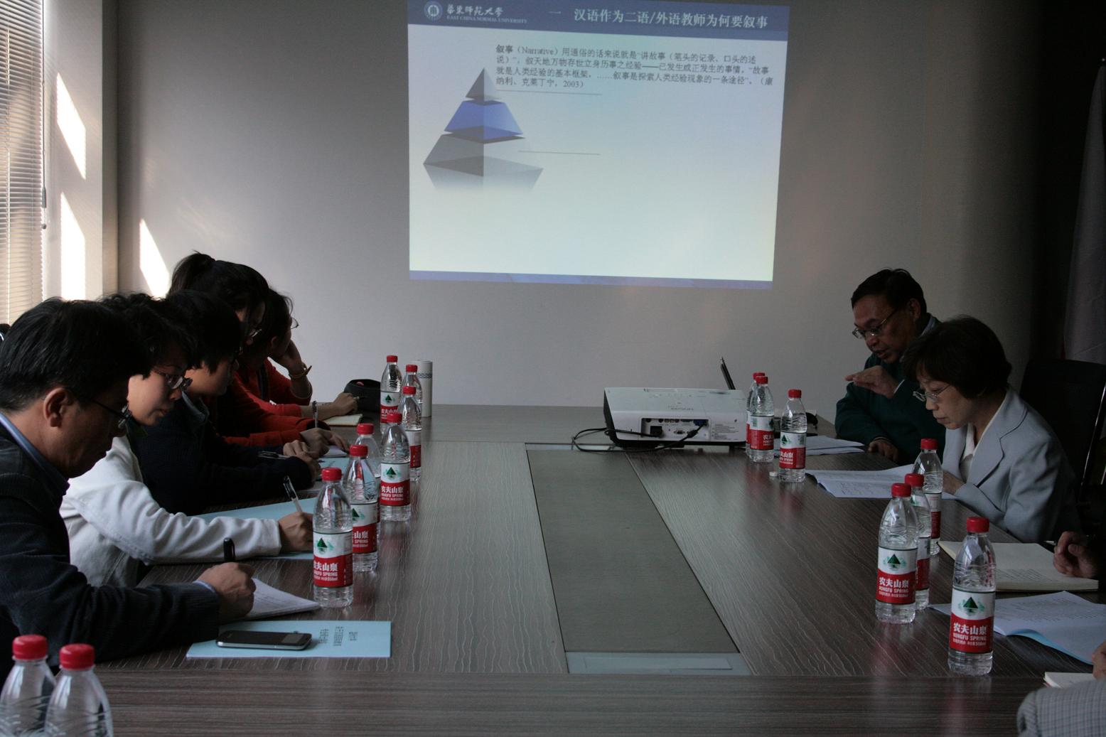 作为研究所的特约研究员,吴勇毅教授作了题为“叙事探究与汉语作为二语/外语教师的认知构建”的讲座,主要阐述了对外汉语教师进行叙事研究的必要性,解析了教师认知的建构过程,分析了叙事研究对教师认知建构和专业发展的重要意义。讲座结合国内外关于教师发展的最新研究成果,配以具体、生动的举例分析,使在座教师受益匪浅。