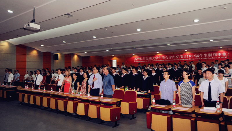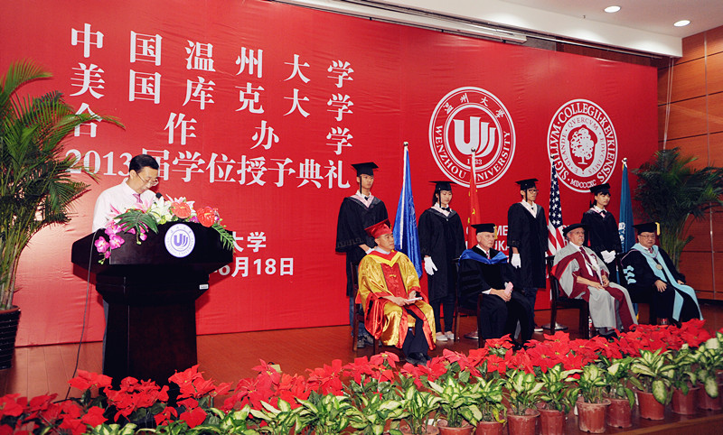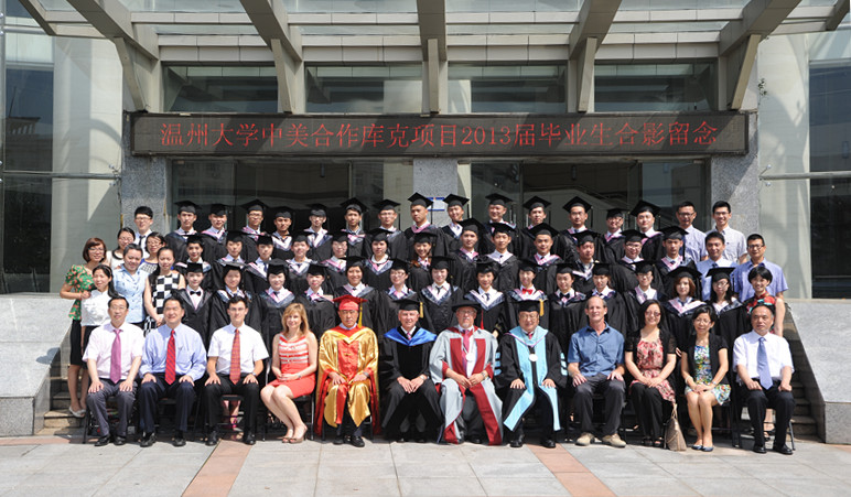 6月18日上午,yl6809永利官网中美合作库克项目2013届毕业典礼在yl6809永利官网茶山校区会展中心雁山厅隆重举行。永利官网2009级42位毕业生从yl6809永利官网副校长薛伟博士、库克大学董事长习克先生(Mr. Robert Schick)、库克大学校长贺睿拉博士(Dr. Jorge L. Diaz-Herrera)、库克大学中国总校区校长黄天中博士(Dr. Michael Hwang)手中接过了美国库克大学管理学学士学位证书,这是他们终生难忘的一天。