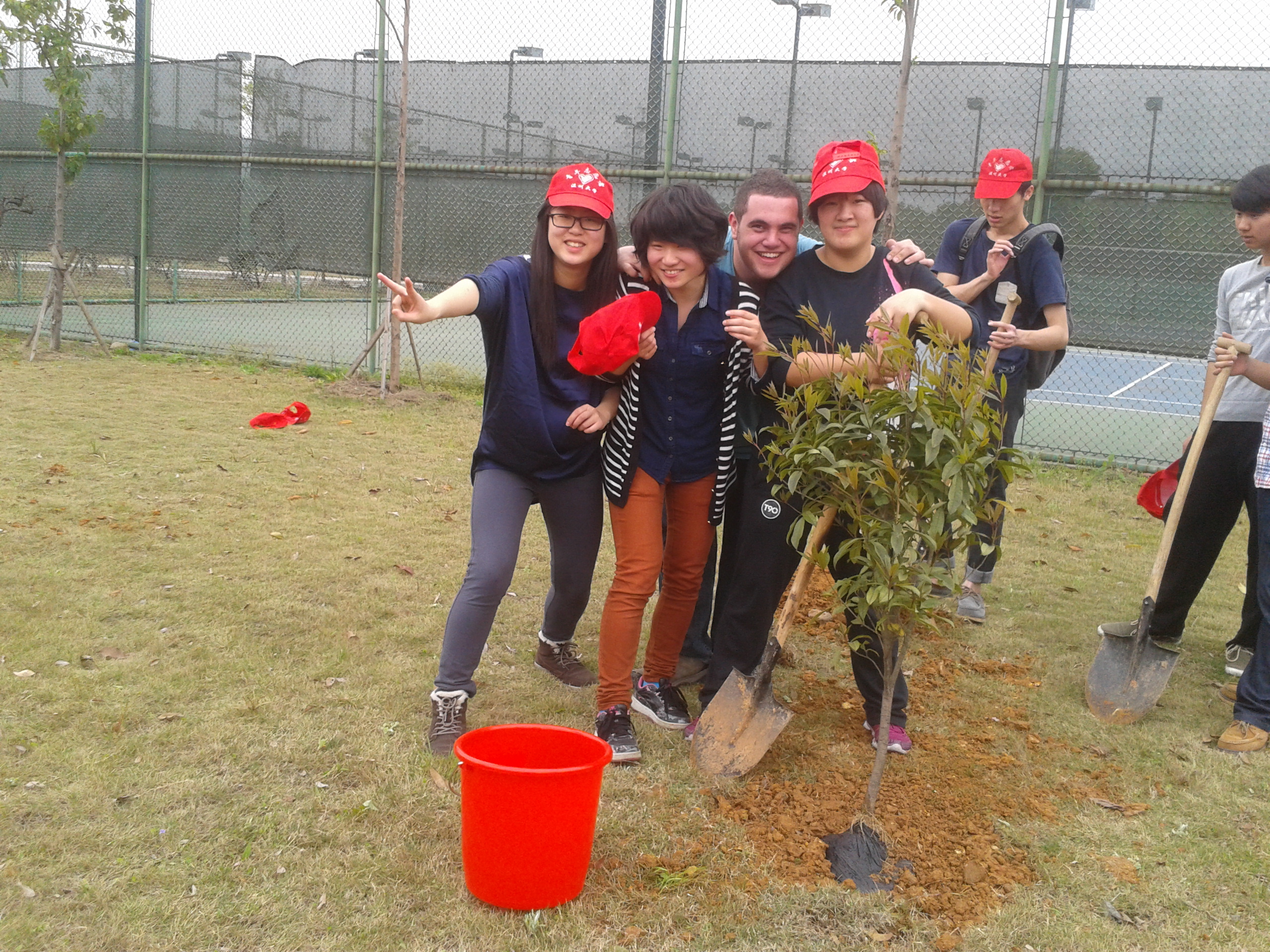 为进一步美化校园环境,丰富广大学生的课外活动,增强大学生保护自然的意识,永利官网15名中外志愿者组织了一次植树活动。