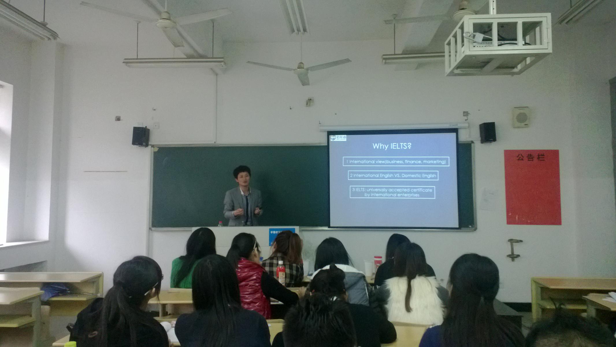 2013年3月20日下午,永利官网在南校区7D208举行了有关雅思学习考试的主题讲座,由新航道雅思英语专家Tommy老师主讲。永利官网2011市销本(中丹)的全体同学参加了此次活动。Tommy老师围绕什么是雅思考试,为什么要参加雅思考试和雅思考试的重要性几个方面进行了专题讲解,期间,同学们踊跃发言,课堂气氛良好。