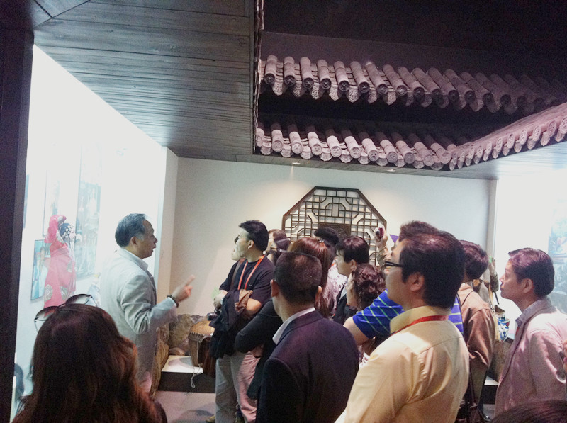 薛伟副校长在学校怡口乐餐厅与来宾们共进午餐,并以一曲俄罗斯民歌《莫斯科郊外的晚上》欢迎远道而来的客人们,来宾们则合唱一曲改编版的《我的中国心》表达拳拳赤子心,感动了在场所有人。餐后,观摩团一行与我校国际合作学院进行了座谈交流,学院严晓鹏院长、朱建平书记和陈军副院长及其他相关老师参加了座谈会,与会各位就中外高校文化交流合作、华人华侨子女教育、海外华文学校教师培训等议题展开了热烈的讨论。之后,观摩团一行来到yl6809永利官网发绣馆,近距离接触发绣这一温州著名的特色传统工艺,发绣馆的魏乐文老师为来宾们详细讲解了发绣的发展历史,介绍了作为国宾礼的精美发绣作品。在随后参观的温州民俗博物馆,有“民间工艺美术家”之称的赖施虬馆长亲自担当讲解员,为来宾们生动展现了温州的民俗文化和民间艺术。