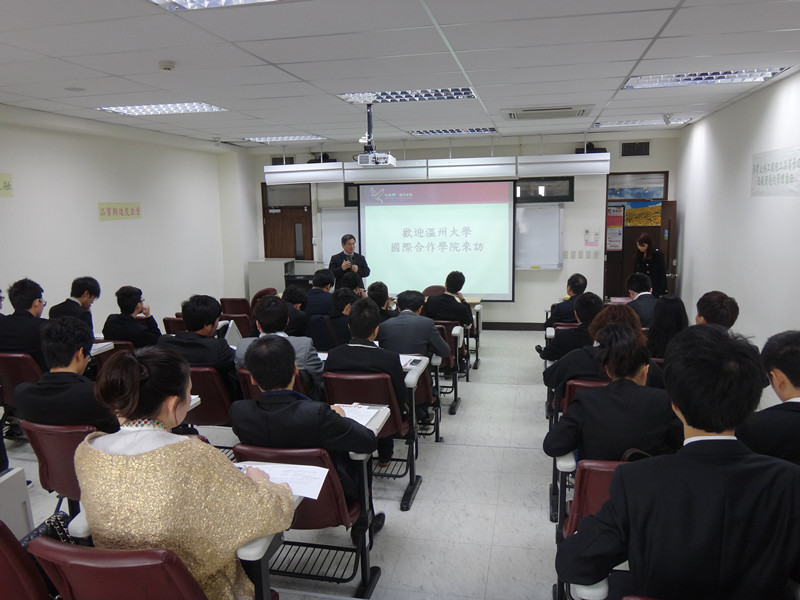 直航拉近了两岸的距离,短短50分钟,永利官网师生就已到达台北。中原大学两岸与国际交流处副国际长胡威志博士热情接待了师生团队,并就中原大学概况作了相应的报告。通过聆听报告,同学们对中原大学的办学历程、育人理念以及对外交流项目都有了一定的了解。随后,同学在相关老师的带领下详细参观了学生事务一站式办理大厅、学生活动中心、教师教学发展中心、艺术中心等凝聚中原大学办学理念和精巧构思的办公活动场所,每到一处,中原大学都设置了欢迎标语,并安排相关的负责人进行讲解。我校学生表现出极大的兴趣,总是迫不及待地与负责人交流、询问,并仔细地记录在案,他们对中原大学深邃的校园文化、温馨的人文氛围以及人性化的设施布局赞叹不已。
