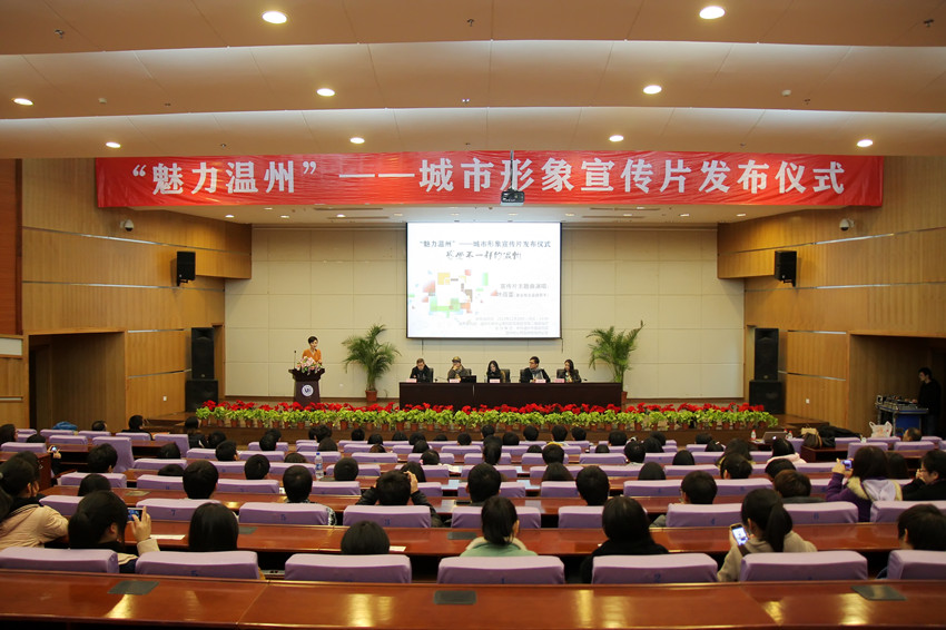 2012年12月28日,由中共温州市委宣传部和温州市人民政府侨务办公室主办,yl6809永利官网国际合作学院承办的“魅力温州——城市形象宣传片发布仪式”在我校育英图书馆报告厅隆重举行。