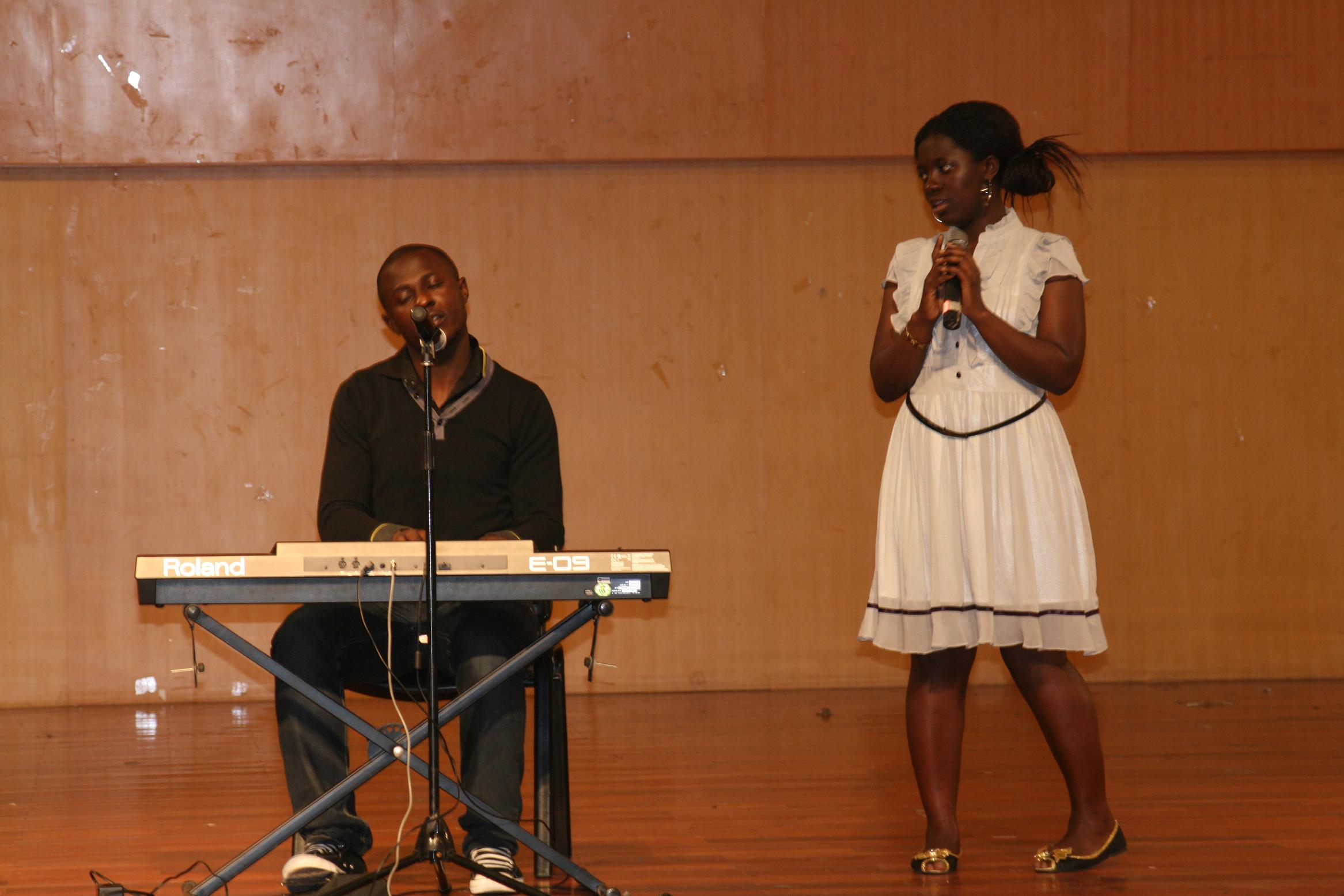 永利官网共有俩组选手参加比赛。分别是张勒特、陈星辰的Too组合和Ike、Becky的Kickers组合。虽说前面的表演已是精彩纷呈,但张勒特和陈星辰的登场丝毫不输气场。“那些年错过的大雨,那些年错过的爱情”一首《那些年》唱出了许多人的心声,赢得了阵阵掌声。可见他们对比赛的准备程度。而紧随其后Ike、Becky的上场更是提升了场内的分贝声。只见Ike弹奏,Becky演唱,场面十分动人。二人默契的配合,深情的演绎将这首《My love》所要表达的爱的气息带给了每一个人,为此次比赛画上了完美的句号。